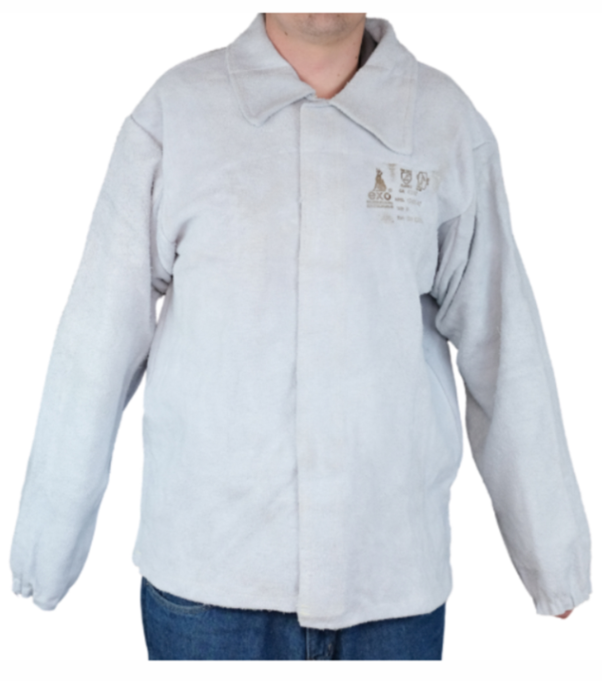 Blusão de segurança confeccionado em raspa com fechamento em velcro.